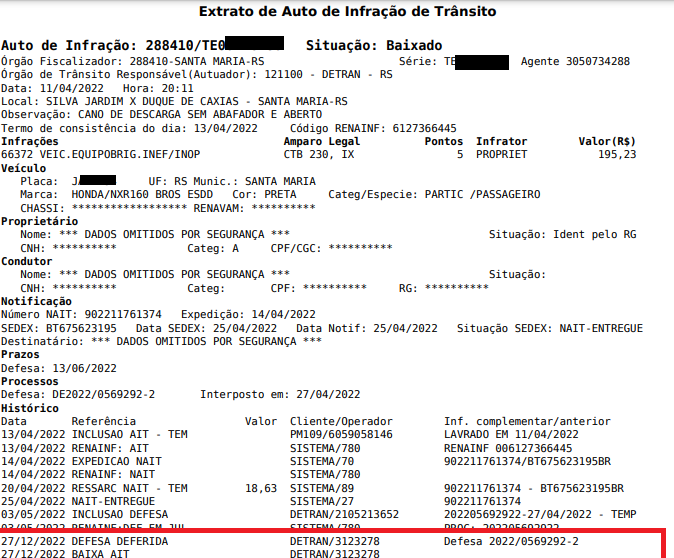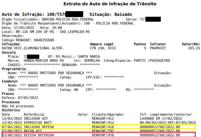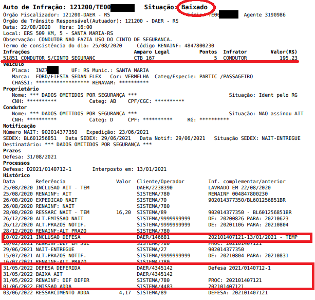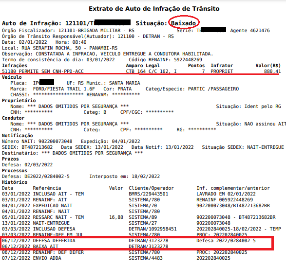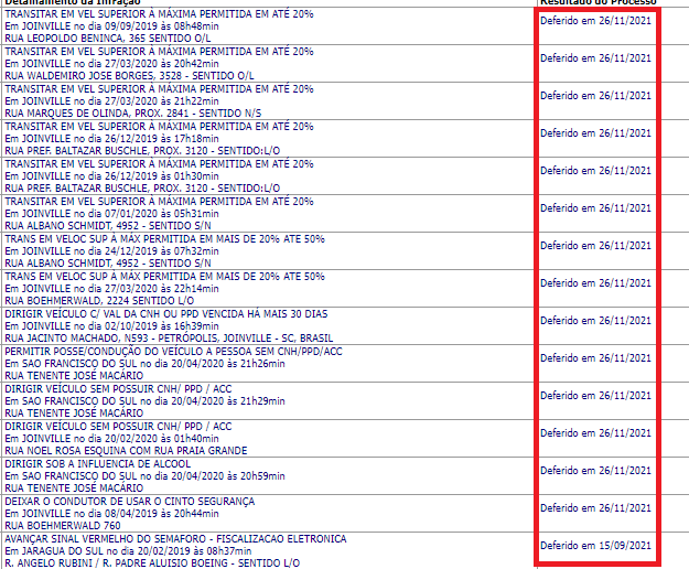 É quando obtemos resultado Deferido, nesta situação não haverá cobrança do valor da multa, não terá os pontos confirmados e não se aplicará a medida administrativa.