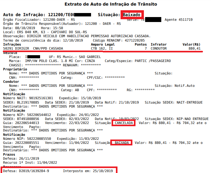 Todo o processo é bem lento, desta maneira o condutor ganha prazo de condução e tempo para pagamento das penalidades, só poderá ser cobrado após encerrar a defesa.